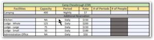 The cost for this outing is planned to be $75 for under 14, $125 for under 16 YO, $145 for 16 an over to cover the cost of the camping, lodging, kitchen, food, and training.